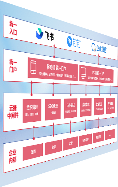 对协作平台提供支持服务,,,支持企业应用与协作平台对接,,,包含组织同步、、消息集成、、待办集成等。。。。支持目前主流的协作平台:钉钉、、企微和飞书。。。。